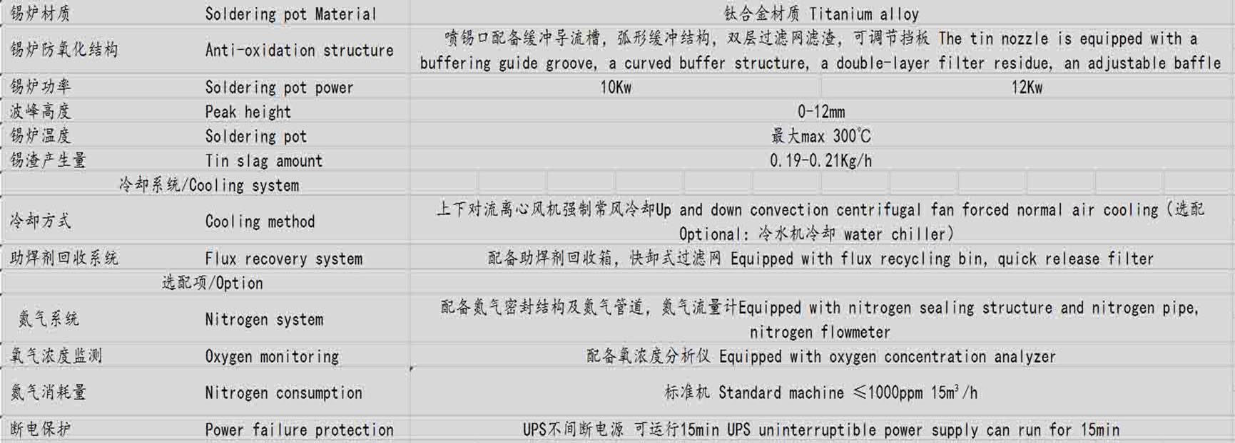 3. 锡炉内胆以及喷口,螺丝均采用军工钛合金材质,保证最低的锡渣氧化量,无铅锡每天氧化量低至8H/1.2KG。