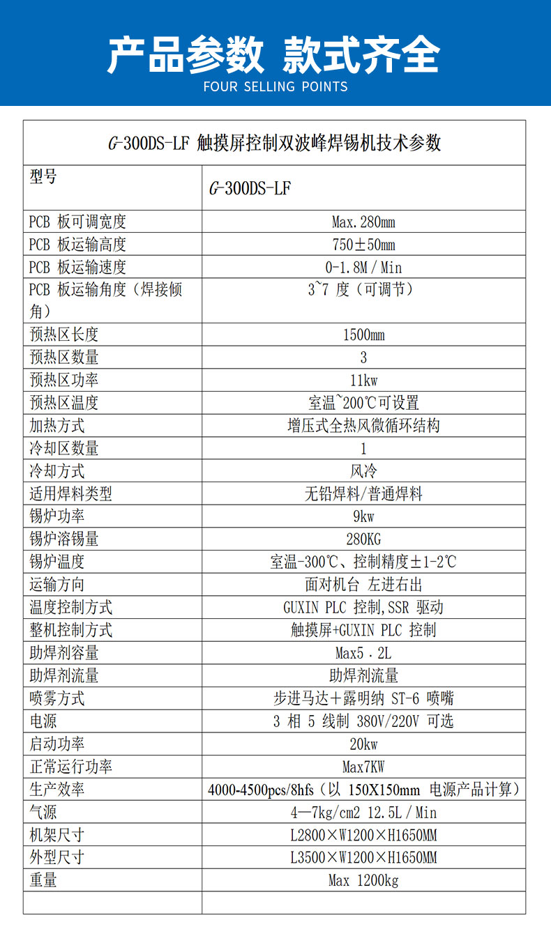 ◇锡炉波峰高度均采用电子变频调速,可独立控制波峰高度。