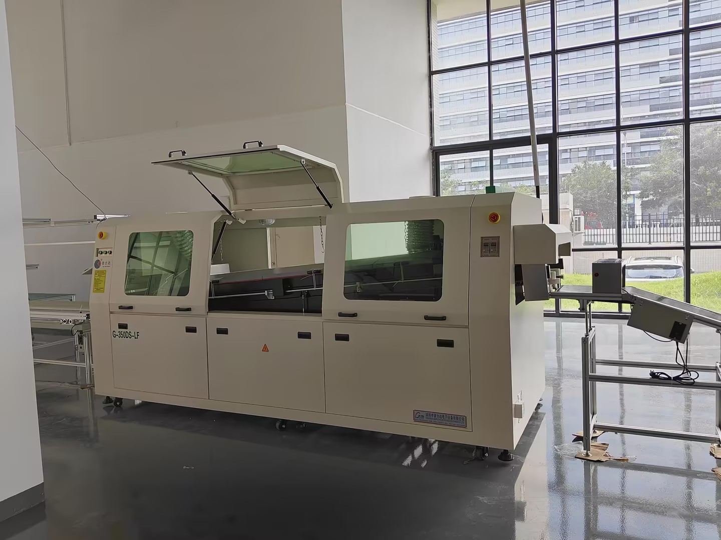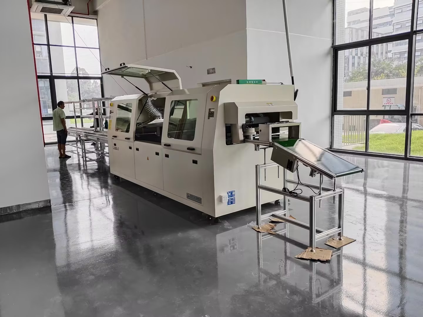 ◇助焊剂喷雾区和锡炉波峰焊接区采用密封式装置,助焊剂烟雾从专用排风及回收通道排出,满足车间环保要求。