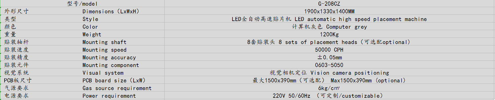 12. 可贴装电路板最大面积:1500MM*390MM