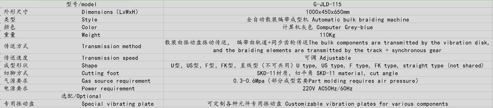 电压:220v AC60Hz、50Hz 尺寸:L1000*W450*H650MM 重量:110kg 效率:4000-18000pcs/h 特点: 1.适用编带、散装电阻、二极管、三极管,电容等元件成型切脚; 2.成型、切脚一次性完成,加工能力强同,提高效率,节省人工成本; 3.成型跨度、脚长均可调整; 4.刀具采用日本进口钢材,特殊切断机方式,寿命长; 5.马达、电器部份均为台湾、日本配件; 6.机器采用分体双定位方式,可避免接口处碰撞造成损坏,可配自动送料振动盘,全自动送料(选购品),也可以分开使用,送料效果好,速度快; 7.可成型U型(卧式),F型(立式)、直线型(三种形状无法共用,订购时需说明成型形状),可自动分物料正负极,百分百分极性; 8.另U型有一特殊规格为US型,专门针对成型跨度较小的元件。可根据客户产品工艺定制各种模具。 |
