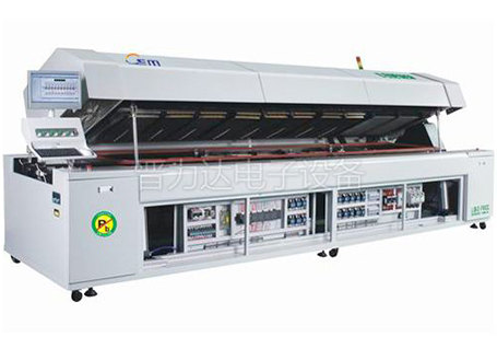 5、氮气保护系统:PCB在预热区、焊接区及冷却区进行全制程氮气保护,可杜绝焊点及 铜箔在高温下的氧化,增强融化钎料的润湿能力,减少内部空洞,提高焊点质量。