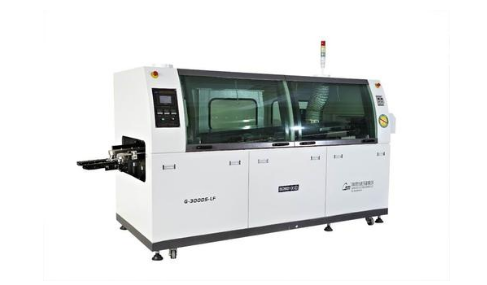 波峰焊是将熔融的液态焊料,借助与泵的作用,在焊料槽液面形成特定形状的焊料波,插装了元器件的PCB置与传送链上,经过某一特定的角度以及一定浸入深度穿过焊料波峰而实现焊点焊接的过程。