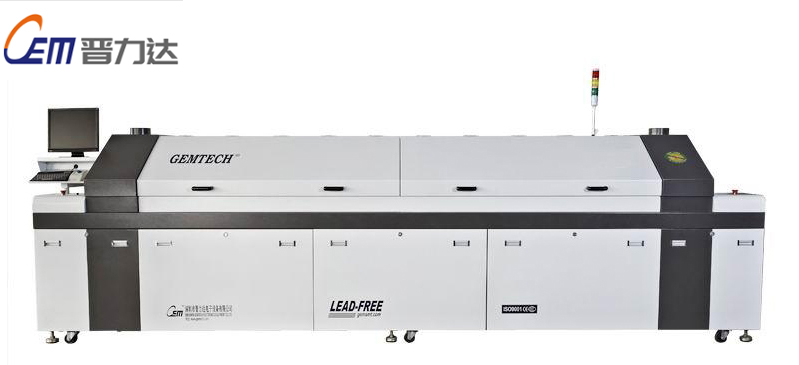 对于首次使用的回流炉,应首先考察一下炉子的结构。看一看有几个温区,有几块发热体,是否独立控温。热电偶放墨在何处。热风的形成与特点,是否构成温区内循环,风速是否可调节。每个加热区的长度以及加热温区的总长度。目前使用的红外回流炉,一般有四个温区,每个加热区有上下独立发热体。热风循环系统各不相同,但基本上能保持各温区独立循环。通常第一温区为预热区,第二、三温区为保温区,第四温区为回流区,冷却温区为炉外强制冷风,近几年来也出现将冷却区设在炉內,并采用水冷却系统。当然这类炉子其温区相应增多,以至出现八温区以上的回流炉。随着温区的増多,其温度曲线的轮廓与炉子的温度设蚤将更加接近,这将会方便于炉温的调节。但随着炉子温区増多,在生产能力増加的同时其能耗増大、费用增多。